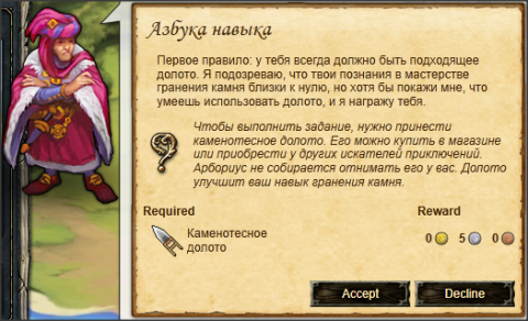 Получение задания Арбориус, каменщик, Мастерская каменщиков на Галечном мосту
