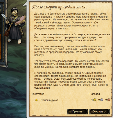 ВыполнениеПосле завершения квеста в доме появится Рикарцо Мартессо, ожившее тело, который знает, как войти в Крепость Эссмарта. Для этого он предложит попросить о помощи какого-нибудь духа.