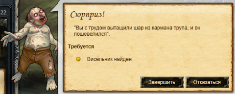 Если выполнить действие, Висельник оживёт и заговорит с вами. Подквест "Сюрприз!"