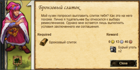 Приняв задание вам необходимо создать или купить Бронзовый слиток Бронзовый слиток. Раздобыв его, отправляемся в Мастерскую в деревне Тизан