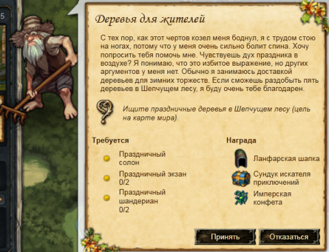Возьмите квест Деревья для жителей и найдите деревья по координатам в Шепчущем лесу: