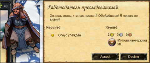 Берем у Огнуса квест. Огнус схвачен но не хочет говорить кто его нанял, выполните одно из действий: