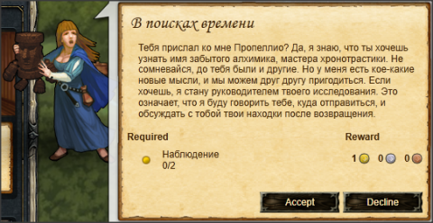 Для завершения квеста необходимо 2 Наблюдения Их можно получить выполнив действия в локация, которые откроет Джемма Пряморез по квестам: