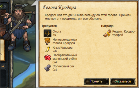 Получить Неповрежденная голова Кродора или Клык Кродора можно за убийство Медведя Кродора в Лесном приюте Маликена