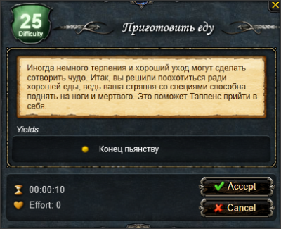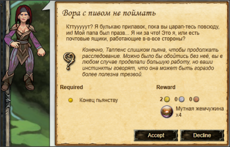 ВыполнениеОтправляемся в Таверну "Мокасин" и выполняем подквесты: Подквест "Стакана слишком много"