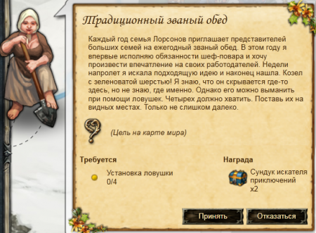 Возьмите квест "Традиционный званый обед" и пройдитесь по точкам вокруг Места встречи: