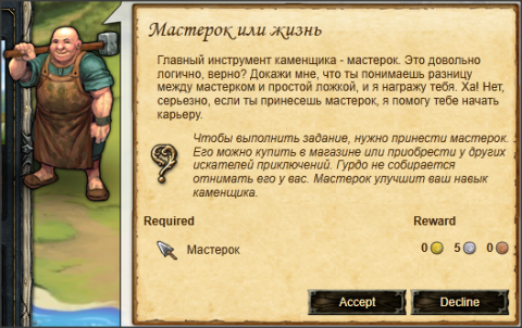 Получение задания Гурдо, строитель, Мастерская строителей на Галечном мосту