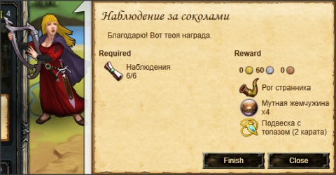 Завершение задания "Наблюдение за соколами"