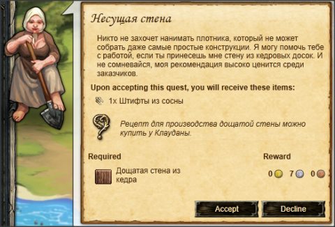 Получение задания Клаудана, плотник, Плотницкая мастерская на Галечном мосту