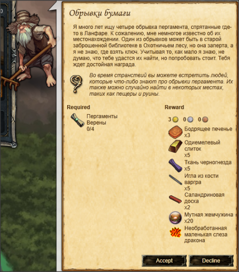 Взяв квест вам необходимо будет найти Пергаменты Верены. Их можно найти в: