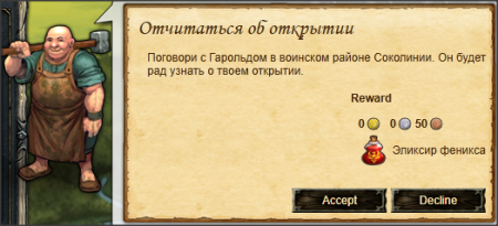 Взяв задание отправляйтесь в город Соколиния, встретьтесь с капитаном Гарольдом и доложите ему о ситуации в холмах.