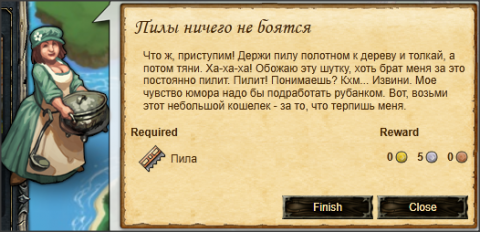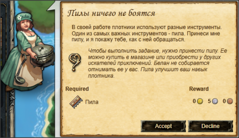 Для прохождения данного квеста необходимо приобрести в магазине Белан Пила Пила и вернутся к ней для сдачи квеста.