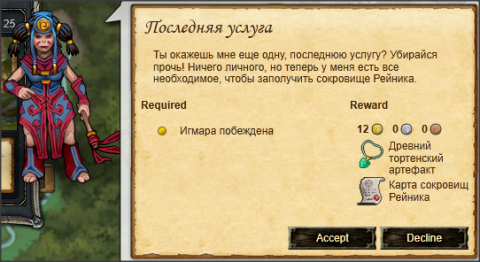 Для завершения квеста необходимо победить Игмару и ее приспешников после чего можно сдать награду по заданию "Друзья в горах" Карта сокровищ Рейника - необходима для квеста "Сокровища Логова"