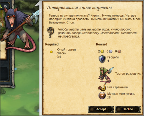 Взявшись за задание необходимо найти тортенов в Шепчущем лесу, которые находятся в следующих точках