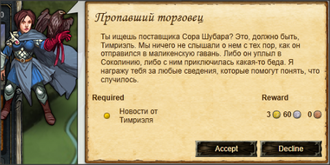 | Выдает | Элеония, Фактория Энорвен, Ланфар |