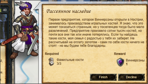 После завершения квеста станет доступным действие Отдать фамильные кости - обмен Фамильные кости Фамильные кости × 5 на Виннерсоны Виннерсоны × 1