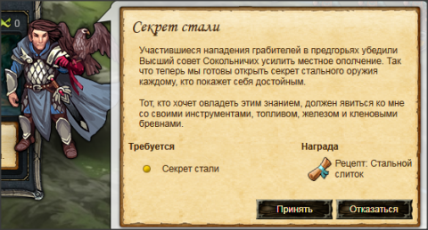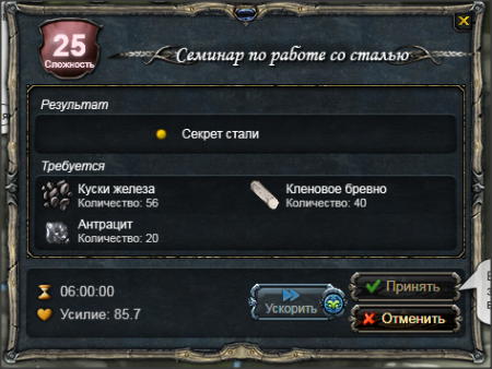 Взяв квест вам необходимо будет прослушать лекцию о приготовлении стали Для этого вам потребуется: