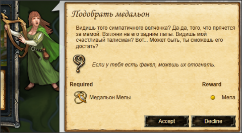 | Получение задания | Мела, Лес Орогой (А3), Логово |