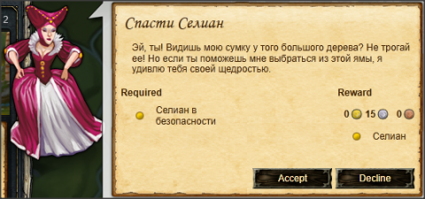 | Получение задания | Селиан, Лес Орогой (D2), Колодец |