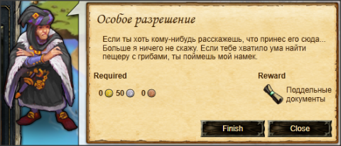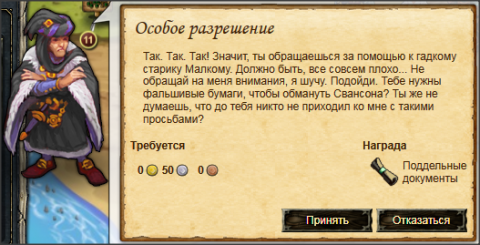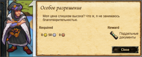 На самом деле поддельные документы можно получить у Жоржа Малькома в Таверне "Ворон" за 50