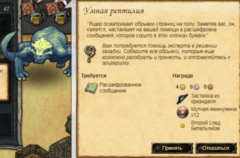 После того как вы получили Добычу ящера, используя Подквест "Умная рептилия"