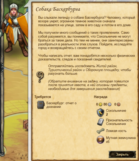 Этот квест является повторяемым. Предварительно требуется собрать доказательства, следы и показания, которые добываются в различных местах Соколинии: