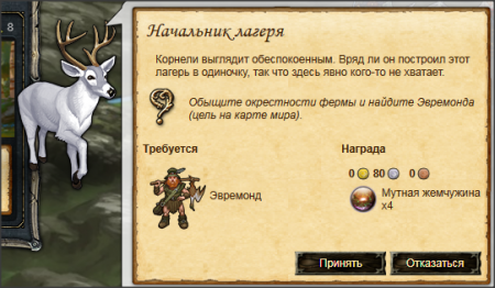 ВыполнениеОтправляйтесь в указанную точку в Орлиных холмах и проведите там разведку, чтобы обнаружить Ферму трех сестер. Найдя ферму заходите на нее. Там вас встретит олень по имени Корнели, он выдаст квест на поиск Эвремонда, местного начальника. Для его нахождения отправляйтесь в точку 89,177 неподалеку от фермы и спасите Эвремонда одним из способов: