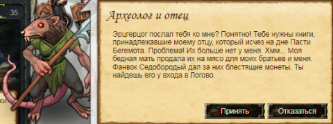 Сначала говорим с Реттой из Общины Уолос, затем с Фанвоком Седобородым на Посту стражи. Последний выдаст подквест: "Археолог и отец"