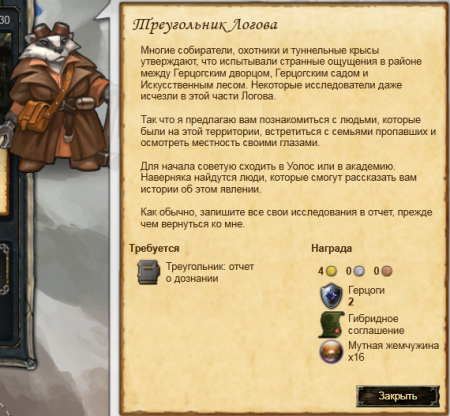 Этот квест является повторяемым. Предварительно требуется собрать рассказы, показания и наблюдения, которые добываются в различных местах Логова: