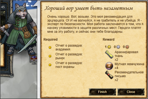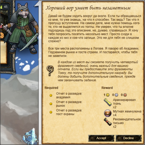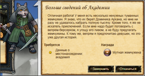 Для получения Отчет о разведке: академия отправляйтесь в Академию Логова и соберите там любые 3 из 4-х данных о местонахождении академии (4-е - даст вам дополнительную награду):