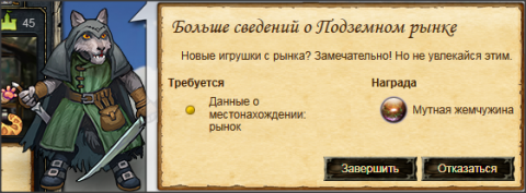 Чтобы получить Отчет о разведке: рынок отправляйтесь в Подземный рынок и соберите там любые 3 Данные о местоположении: рынок из возможных 4-х (4-е - даст вам дополнительную награду):