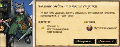 Получить Отчет о разведке: пост охраны можно на Посту стражи и соберите там любые 3 Данные о местоположении: пост охраны из возможных 4-х (4-е - даст вам дополнительную награду):