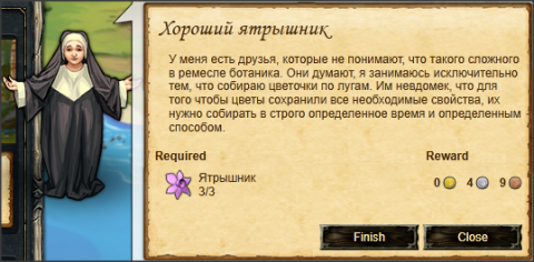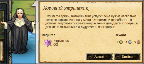 Амиша просит Вас принести ей Ятрышник, который можно добыть там же в Лесу Бериус. После добычи возвращайтесь к Амиши и сдавайте квест.