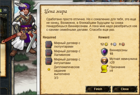 - Мирный договор с Халмвиком и Дипломатическое задание выполнено × 1 получаем за цепочку квестов, начинающихся с "Бал бабочек"