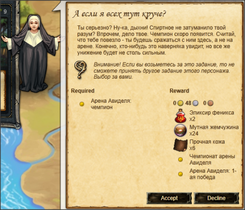 Внимание!!! Взяв этот квест вы не сможете принять задание "Выход на арену" от Серены.
