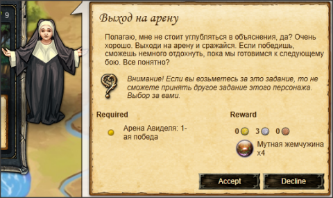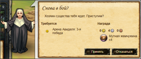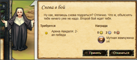 Приняв задание вам станет доступным первый бой на Арене Авиделя против: