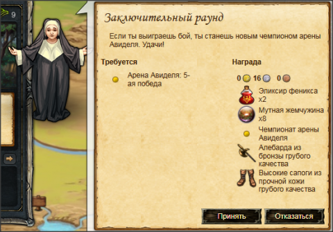 Приняв задание вам станет доступным заключительный бой на Арене Авиделя против: