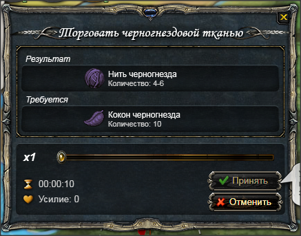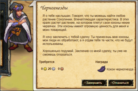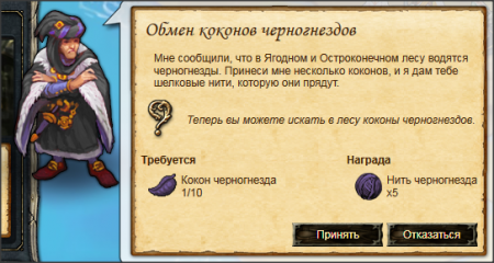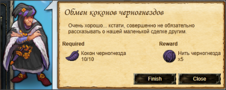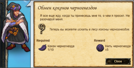 После этого обмена в локации, где обитает Хорж Малком, появится опция обмена коконов черногнезда на нити