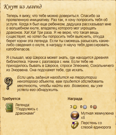 Роальд расскажет вам что в детстве слышал легенду от дедушки о кнуте, владелец которого может укрощать драконов и просит поискать корни этой легенды.